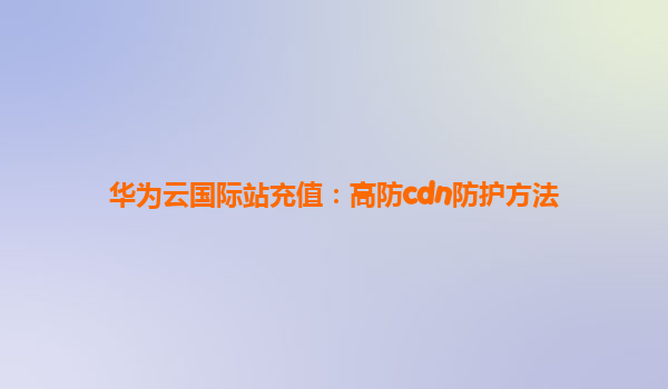 华为云国际站充值:高防cdn防护方法与华为云优势解析