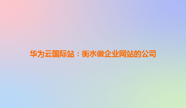华为云国际站:衡水企业网站建设的优选合作伙伴