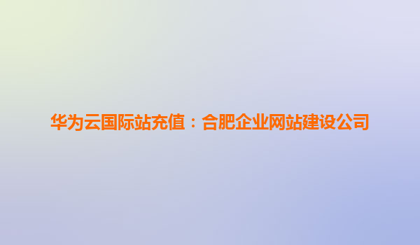 华为云国际站充值:助力合肥企业网站建设公司腾飞