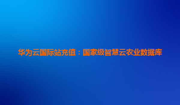 华为云国际站充值:国家级智慧云农业数据库