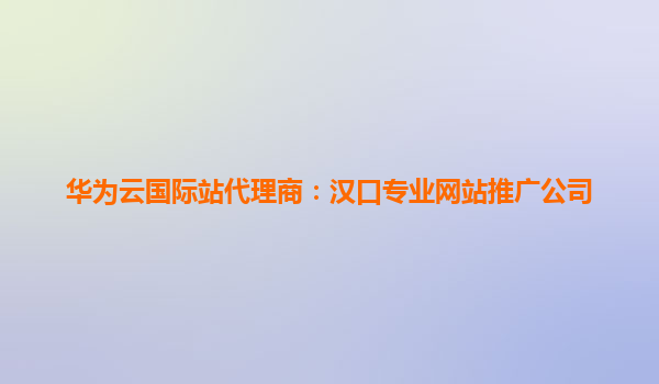 华为云国际站代理商:汉口专业网站推广公司的首选合作伙伴