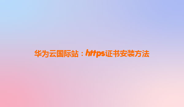 以下是详细的HTTPS证书安装流程,适用于华为云国际站用户: