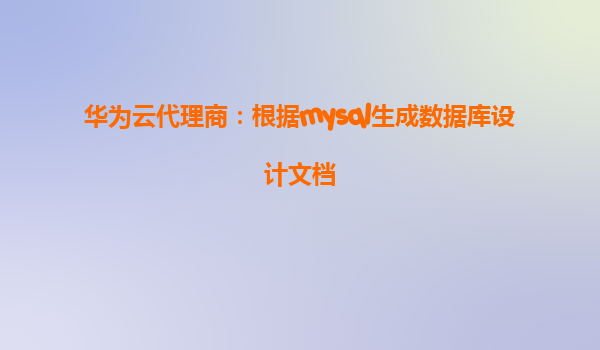 华为云代理商:基于MySQL生成数据库设计文档的实践指南