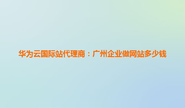 华为云国际站代理商:广州企业做网站多少钱?全方位解析建站成本与华为云优势
