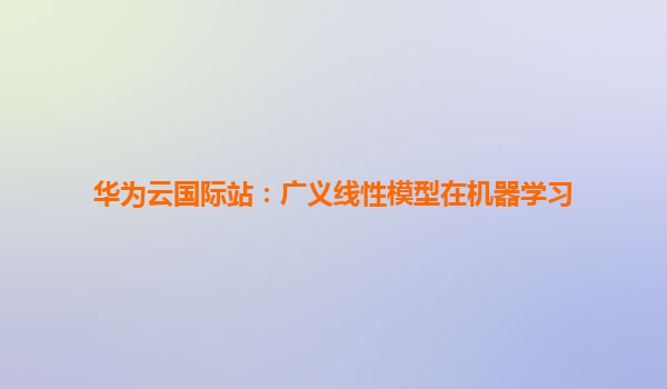 华为云国际站:广义线性模型在机器学习的应用与实践
