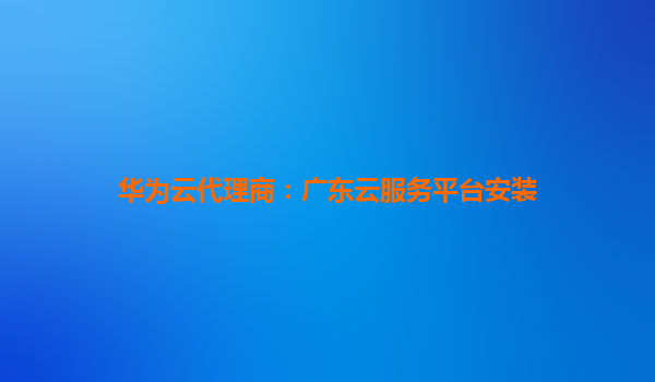 华为云代理商:广东云服务平台安装指南