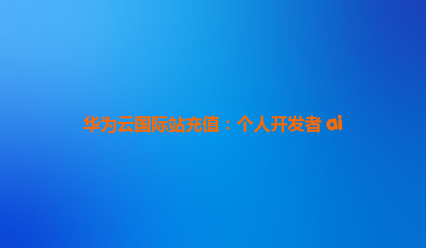 华为云国际站充值:个人开发者AI赋能指南