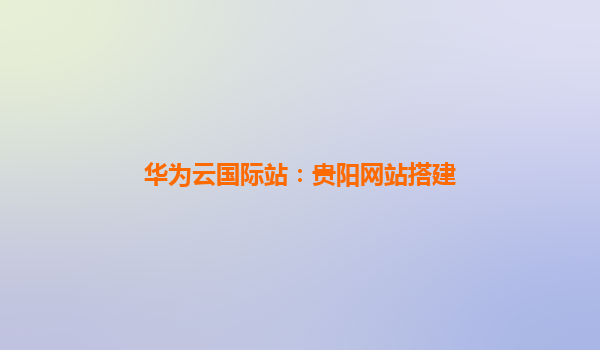 华为云国际站:助力贵阳企业高效搭建全球化网站