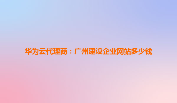 华为云代理商:广州建设企业网站多少钱?全面解析成本与优势