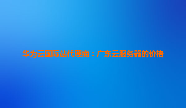 华为云国际站代理商:广东云服务器的价格与优势解析