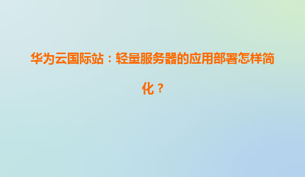 华为云国际站:轻量服务器的应用部署怎样简化?