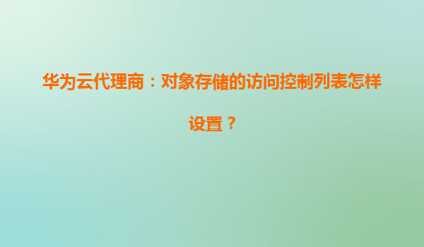 华为云代理商指南:对象存储访问控制列表(ACL)设置详解
