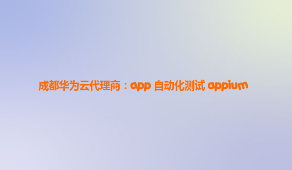 成都华为云代理商:app 自动化测试 Appium