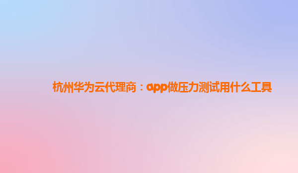 杭州华为云代理商:app做压力测试用什么工具