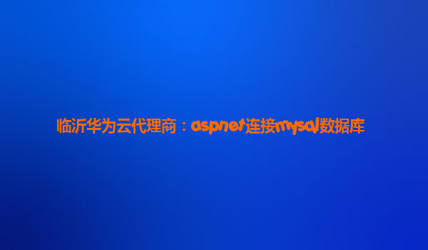 临沂华为云代理商:aspnet连接mysql数据库