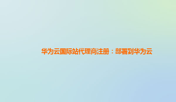 华为云国际站代理商注册:部署到华为云