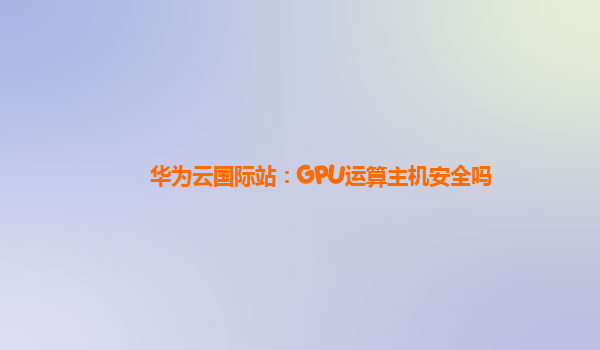 华为云GPU运算主机能够为用户提供稳定、高效、可扩展的计算能力,但如何确保其计算过程的安全性,成为了用户在选择时考虑的重要因素。