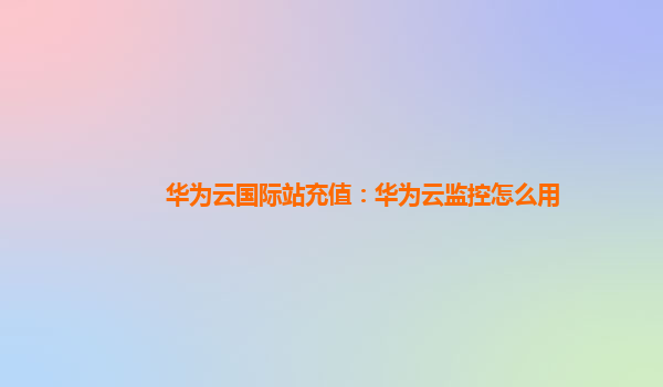 华为云国际站充值:华为云监控怎么用