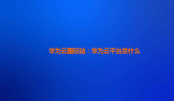 华为云国际站:华为云平台是什么