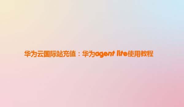 华为云国际站充值:华为Agent Lite使用教程