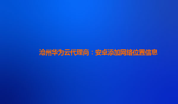 2024-02-17泰州华为云代理商:Android中网络定位服务 华为云的优势 作为泰州地区的华为云代理商,我们深知华为云在云计算领域的强大实力和技术优势。华为云以其先进的硬件设施、安全可靠的网络环境和高效的云计算服...