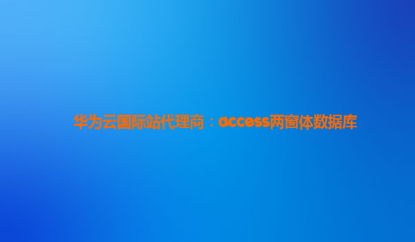 2024-02-17华为云国际站代理商:access两窗体数据库 引言 华为云作为全球领先的云计算服务商,凭借其强大的技术实力和稳定可靠的服务质量,赢得了广大客户的信赖。作为华为云国际站的代理商,access两窗体数据库具有独特的优...
