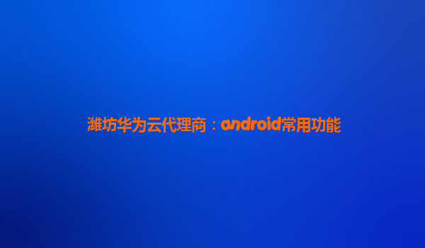 2024-02-16潍坊华为云代理商:Android常用功能 引言 近年来,随着移动设备的普及和人们对移动应用的需求增加,Android系统成为最受欢迎的操作系统之一。作为潍坊华为云的代理商,我们将介绍一些Android的常用功能,并...