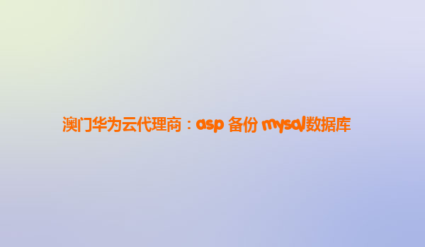 2024-02-16澳门华为云代理商:ASP备份MySQL数据库 一、引言 本文将介绍如何使用澳门华为云代理商ASP(华为云服务器产品)来备份MySQL数据库。我们将首先了解华为云的优势,然后详细介绍备份MySQL数据库的步骤。 二、华为云的...
