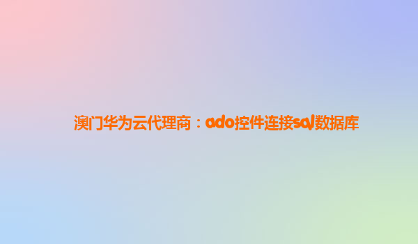 2024-02-15澳门华为云代理商:ADO控件连接SQL数据库 引言 随着云计算的快速发展,越来越多的企业开始将业务迁移至云平台。作为一家知名的云计算服务提供商,华为云以其强大的服务器产品和优势成为了澳门华为云代理商首选。在...
