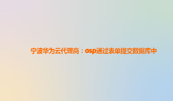 2024-02-14宁波华为云代理商:ASP通过表单提交数据库中 一、介绍 本文将介绍如何使用ASP(ActiveServerPages)通过表单提交数据到数据库中。ASP是一种服务器端脚本语言,常用于动态网页开发。通过表单提交数据到数据库...