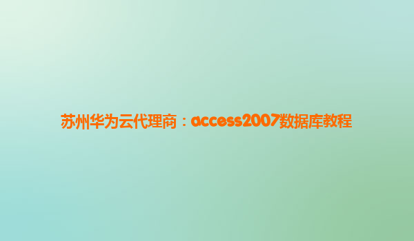 2024-02-13苏州华为云代理商:access2007数据库教程 一、什么是Access2007数据库 Access2007是由微软开发的一款关系型数据库管理系统软件,它提供了用户友好的图形化界面和强大的数据库管理功能,适用于个人和小型企业使...