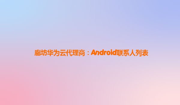 2024-02-12廊坊华为云代理商:Android联系人列表 引言 华为云是一家领先的云服务提供商,在全球范围内广泛应用于各种行业和领域。作为廊坊地区的华为云代理商,我们将着重介绍华为云在Android联系人列表方面的优势。 Android...