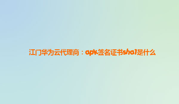 2024-02-12江门华为云代理商:APK签名证书SHA1是什么 1.概述 在移动应用开发过程中,APK签名证书SHA1是一种非常重要的安全标识,它用于验证Android应用的真实性和完整性。作为江门华为云代理商,我们深入了解并掌握了...