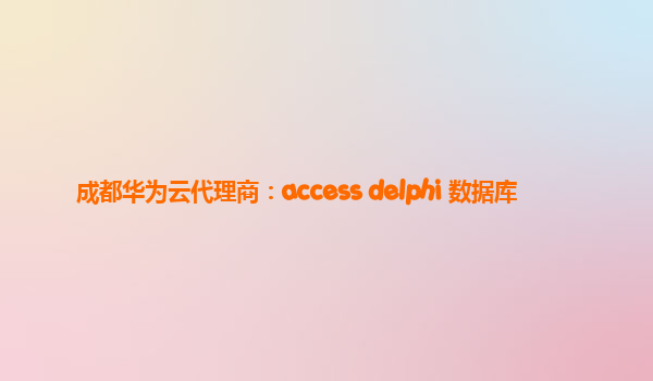 2024-02-10成都华为云代理商:access+delphi+数据库 1.引言 随着云计算技术的快速发展,越来越多的企业开始意识到云服务器的重要性和价值。作为华为云的代理商,我们将介绍华为云的优势,并结合其服务器产品,探讨如何使用ac...