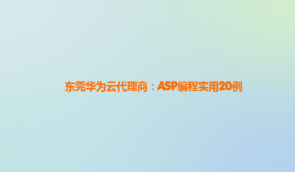 2024-02-10东莞华为云代理商:ASP编程实用20例 引言 作为东莞华为云代理商,我们深知华为云作为全球领先的云服务提供商,拥有多项优势。本文将结合华为云服务器产品,为大家介绍ASP编程实用的20个例子,并展示华为云在这...