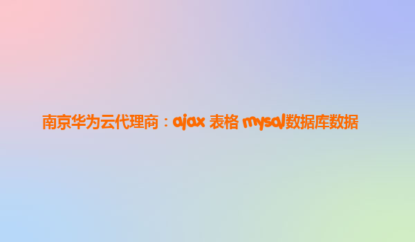 2024-02-10南京华为云代理商:ajax表格mysql数据库数据 引言 本文将介绍如何使用Ajax技术从MySQL数据库中获取数据,然后通过表格展示在网页上。结合南京华为云代理商的优势,我们将使用华为云服务器产品进行演示和...