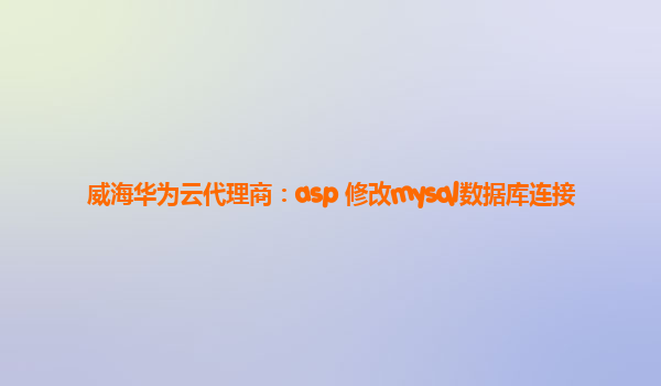 威海华为云代理商:ASP修改MySQL数据库连接 一、引言 MySQL是一种开源的关系型数据库管理系统,被广泛应用于Web应用程序中。在ASP(ActiveServerPages)开发中,我们常常需要通过连接MySQL数据库来进行数据的读取...