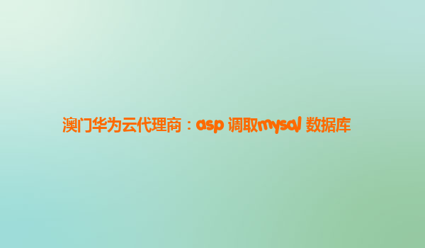 • 澳门华为云代理商:asp+调取mysql+数据库