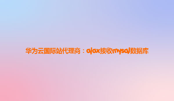 2024-02-06以华为云国际站代理商:ajax接收mysql数据库 1.引言 本文将介绍如何使用Ajax技术接收MySQL数据库的数据,并结合华为云服务器产品展示其优势。 2.AJAX简介 Ajax(AsynchronousJavaScriptandXML)是一种用于创...