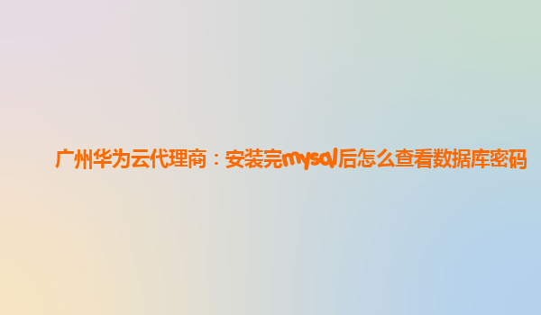2024-02-06广州华为云代理商:安装完mysql后如何查看数据库密码 一、背景介绍 在广州地区,华为云是一家领先的云计算服务提供商,提供全面的技术解决方案和优质的云服务。作为华为云代理商,我们经常会遇到客户在安装完mysql...