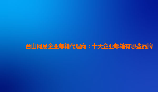 台山网易企业邮箱代理商:十大企业邮箱有哪些品牌 在如今这个信息化的时代,电子邮件已成为人们生活和工作中必不可少的通讯方式之一。而对于企业来说,使用专业的企业邮箱更能提高工作效率和形象。下面列出十大品牌...