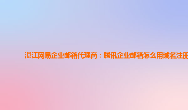 2024-03-14湛江网易企业邮箱代理商:如何使用域名注册腾讯企业邮箱 随着互联网的快速发展,企业邮箱作为一种重要的沟通工具被越来越多的企业所使用。而在众多企业邮箱中,腾讯企业邮箱以其稳定、易用、安全等特点,被广泛地应...