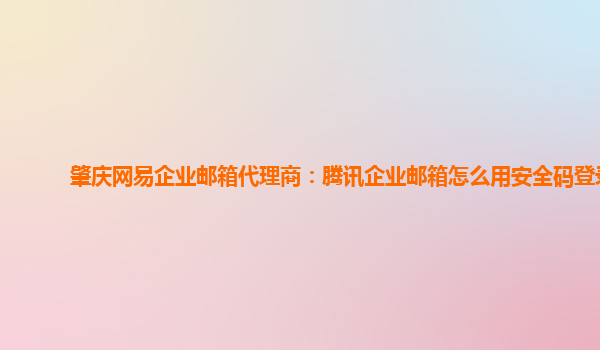 2024-03-14肇庆网易企业邮箱代理商:腾讯企业邮箱怎么用安全码登录 随着互联网的快速发展,企业信息化建设也越来越受到了重视。作为企业内部沟通和信息交流的重要工具之一,企业邮箱在现代企业中得到了广泛应用。 作为肇庆地...
