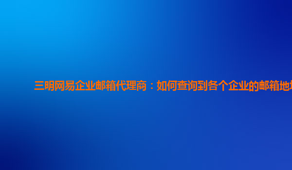 2024-03-14查询企业邮箱地址方法 三明网易企业邮箱代理商:如何查询到各个企业的邮箱地址 作为三明地区的网易企业邮箱代理商,我们在为企业提供邮箱服务的同时,也需要了解各个企业的邮箱地址。下面我们来介绍查询企业邮箱地...