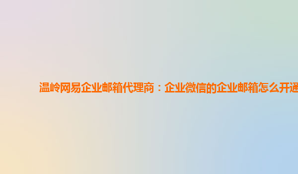 2024-03-14温岭网易企业邮箱代理商:企业微信的企业邮箱怎么开通 企业微信是一款为企业提供沟通和管理服务的应用,其中包括企业邮箱功能。在这篇文章中,我们将针对企业邮箱的开通方式进行介绍。 步骤一:注册企业微信 要使用...