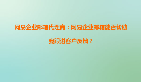 2025-09-23网易企业邮箱如何帮助代理商高效跟进客户反馈 在现代商业环境中,及时有效的客户反馈处理是企业成功的关键。作为网易企业邮箱的代理商,了解并充分利用该平台的优势,能够显著提升客户服务质量和效率。 一站式客户...