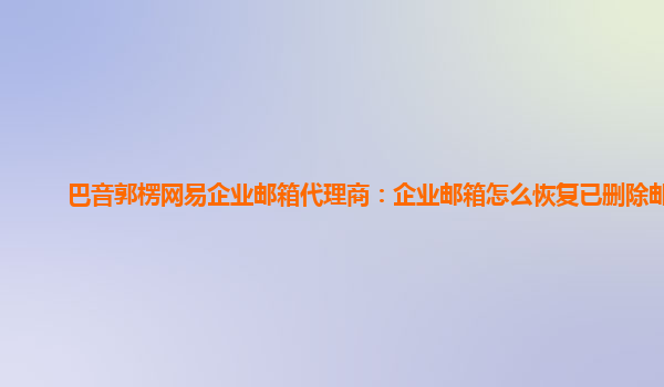 2024-03-14企业邮箱作为公司内部邮件沟通的常用工具,在工作中扮演着不可替代的角色。然而,由于种种原因,有时会不小心删除了重要的邮件,引起一定的损失。那么,企业邮箱怎么恢复已删除邮件呢?一、利用网易邮箱自带的“回收...