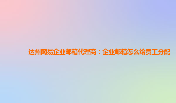 2024-03-14达州网易企业邮箱代理商:企业邮箱怎么给员工分配 企业邮箱是一种专门为企业用户打造的高效沟通工具,不仅可以提高工作效率,还能够提高信息安全性。在使用企业邮箱时,如何给员工分配邮箱账号? 下面让我们来看看...