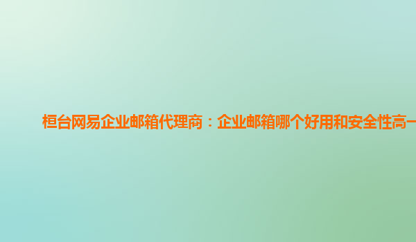 2024-03-14企业邮箱哪个好用和安全性高一点?——从网易企业邮箱代理商角度分析 随着互联网信息化程度的不断提高,企业需要一个高效、安全的邮箱系统来处理日常联系、公文传递等事务。在众多邮箱服务商中,网易企业邮箱备受信...