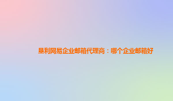 哪个企业邮箱好?——网易企业邮箱代理商给您答案 在申请企业邮箱时,很多企业都会面临一个选择的问题:到底该选择哪个企业邮箱呢?这里我们向大家推荐网易企业邮箱。 网易企业邮箱的优势 稳定性高:网易企业...